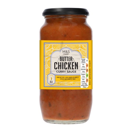M&S Butter Chicken Curry Sauce combines tomatoes, butter, and aromatic spices for an authentic flavour base. This ready-to-use sauce is designed to easily create a popular Indian dish at home. It provides a rich, smooth texture perfect for coating chicken or pieces of paneer.