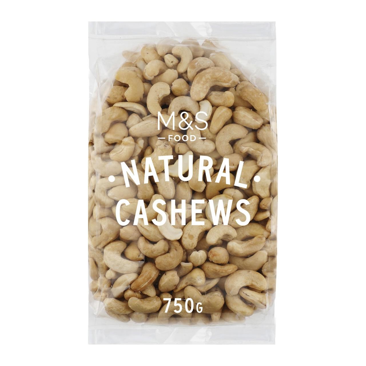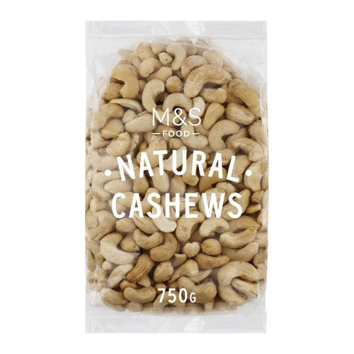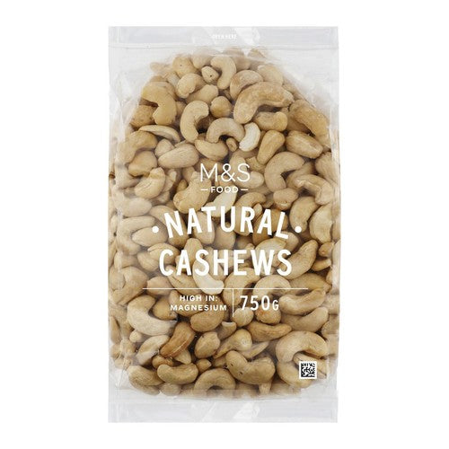 These M&S Food natural cashews offer a simple, wholesome snack option. This large 750g bag ensures you have plenty of quality nuts available for snacking or cooking throughout the week. The product presents whole cashew kernels, supplied in their basic state without any added salt or seasoning. Enjoy the creamy texture and inherent flavour of these high-quality nuts straight from the trusted M&S Food range.