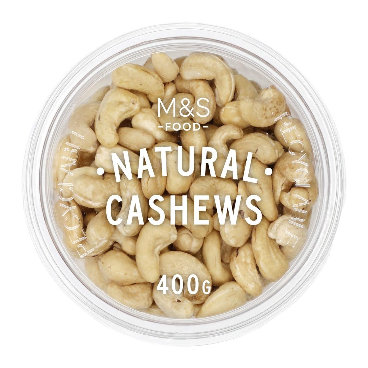 Enjoy the simple quality of M&S FOOD Natural Cashews, supplied in a substantial 400g pack for your pantry. These premium nuts are presented without any added salt or oil, allowing their inherent creamy flavour to be the primary focus. This versatile product serves as an excellent source for healthy snacking or incorporating into various culinary preparations.