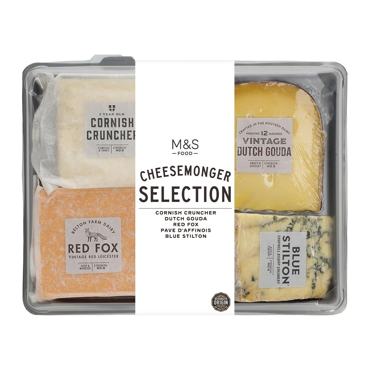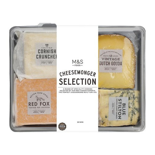 This M&S Cheesemonger Selection offers a curated variety of premium cheeses perfect for entertaining or gifting. The platter features four distinct types, sourced from specific dairies and aged appropriately for optimal flavour. You can confidently enjoy this selection as the product is confirmed suitable for vegetarians.