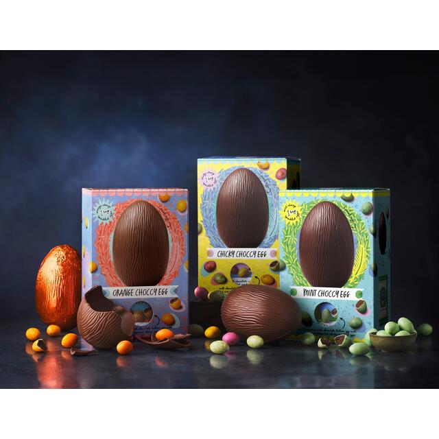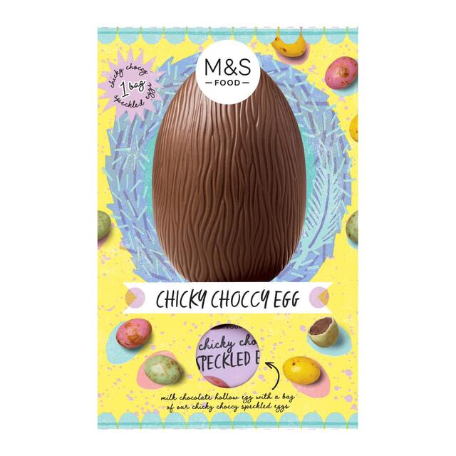 M&S Chicky Choccy EggsMilk chocolate mini eggs with a speckled candy shell.