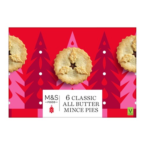 Enjoy the traditional taste of these M&S Classic All Butter Mince Pies, presented in a convenient pack of six ready for serving. These treats combine a rich, spiced fruit filling with a noticeably crisp pastry casing.