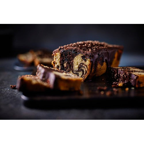 This visually appealing marble loaf cake is ready to serve directly from the packaging.