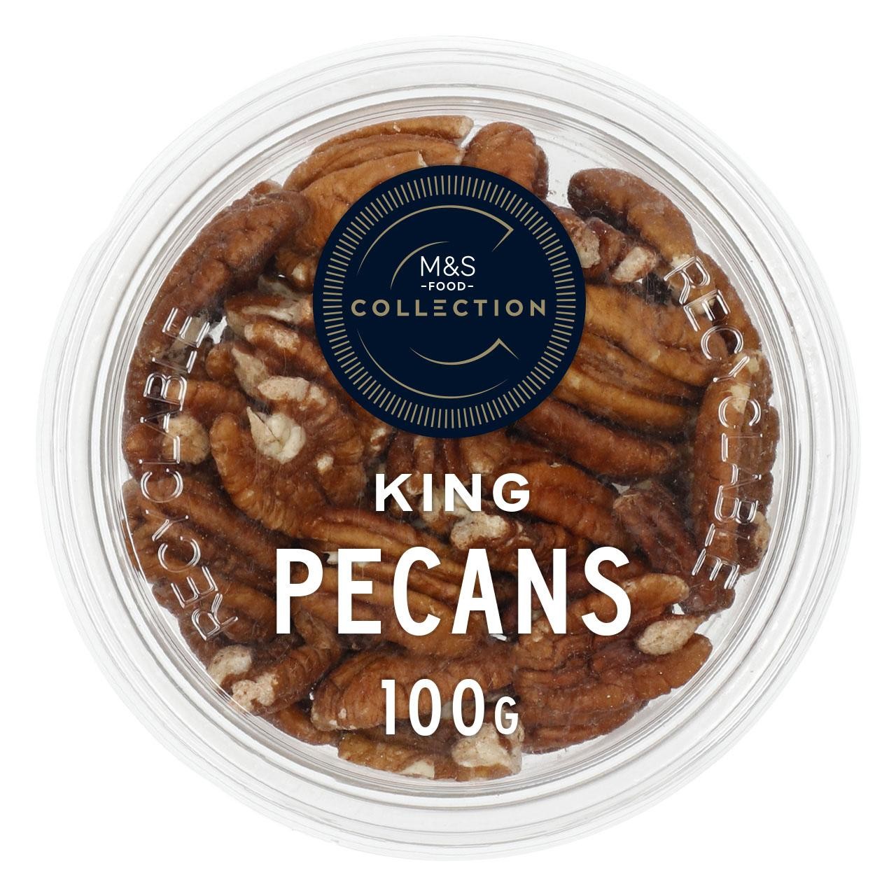 M&S Collection King Pecans offer a selection of high-quality nuts presented under the trusted M&S Food Collection brand. These whole pecans are supplied in a 100g pack, ideal for snacking or adding texture to various dishes. The transparent packaging allows for clear inspection of the product's appearance before purchase.
