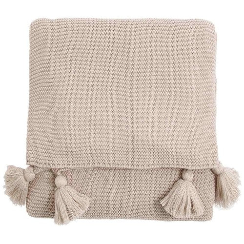 The M&S Collection knitted throw provides substantial warmth when you need to snuggle up on cooler evenings. This furnishing item is constructed with a distinct ribbed texture, which naturally allows for comfortable stretching when draped. Classic decorative tassels are applied to each of the four corners, offering a refined finish to this neutral accessory.