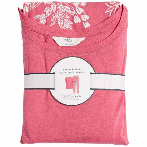 Refresh your nightwear collection with this stylish M&S Collection pyjama set, designed for comfort and modern appeal. This set features a plain short-sleeved top perfectly contrasted with long bottoms showcasing an attractive leaf print design. It is crafted from a cotton-rich material blend for a pleasant feel throughout the night.