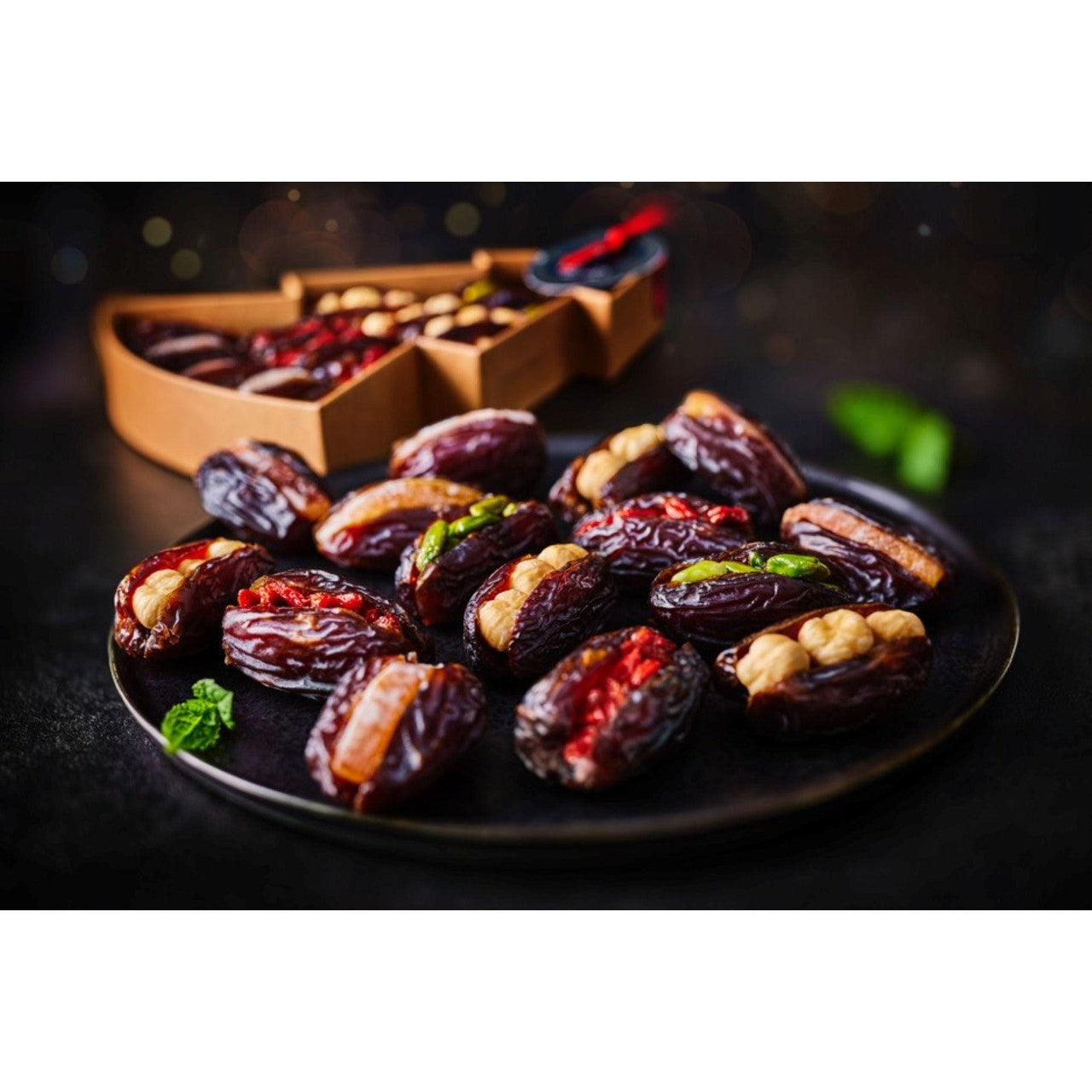 Indulge in the M&S Collection Medjool Dates Selection, featuring premium, hand-pitted dates filled with luxurious ingredients. This assortment offers a sophisticated blend of textures and flavours ideal for gifting or personal enjoyment. Enjoy the rich taste of these gourmet dates, perfectly prepared for a superior snacking experience.