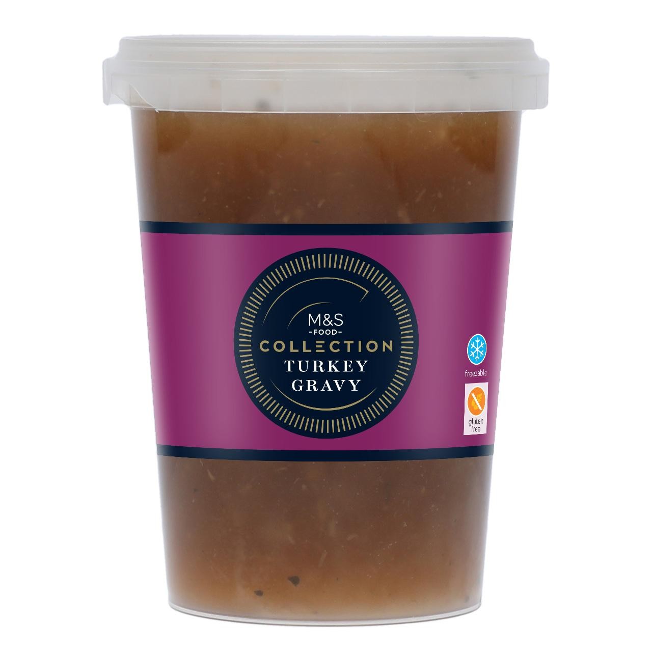 This M&S Collection turkey gravy delivers rich, savoury flavour for your complete roast dinner experience. It is carefully crafted using traditional poultry elements and aromatic herbs for depth. The gravy base incorporates chicken fat and includes pieces of real cooked turkey thighs for an authentic taste profile.