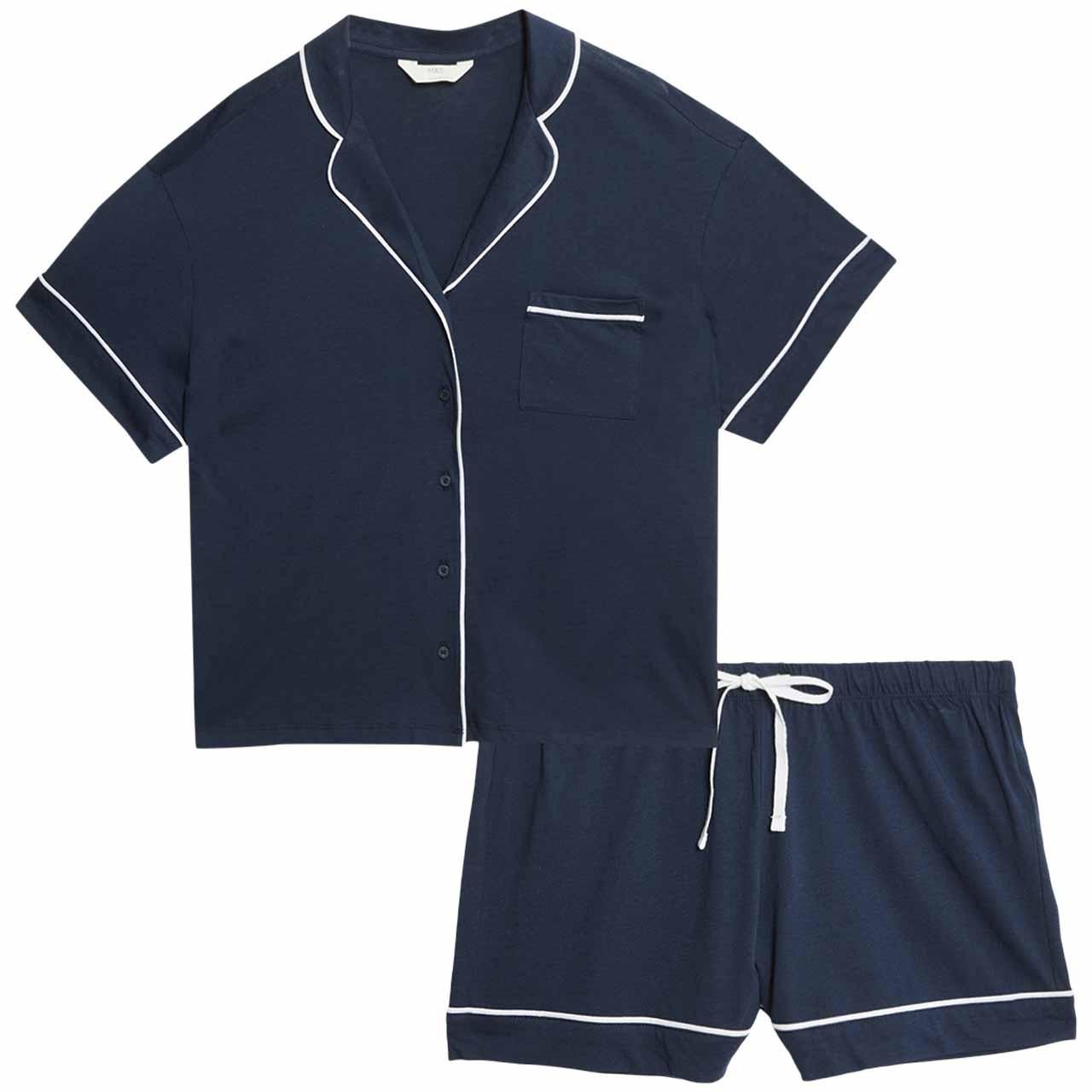 Enjoy extra comfort during the night with this regular-fit shortie set from the M&S Body range. This two-piece pyjama set is crafted from a soft cotton-modal blend for a cosy feel. The design features a classic collared shirt paired with corresponding drawstring shorts.