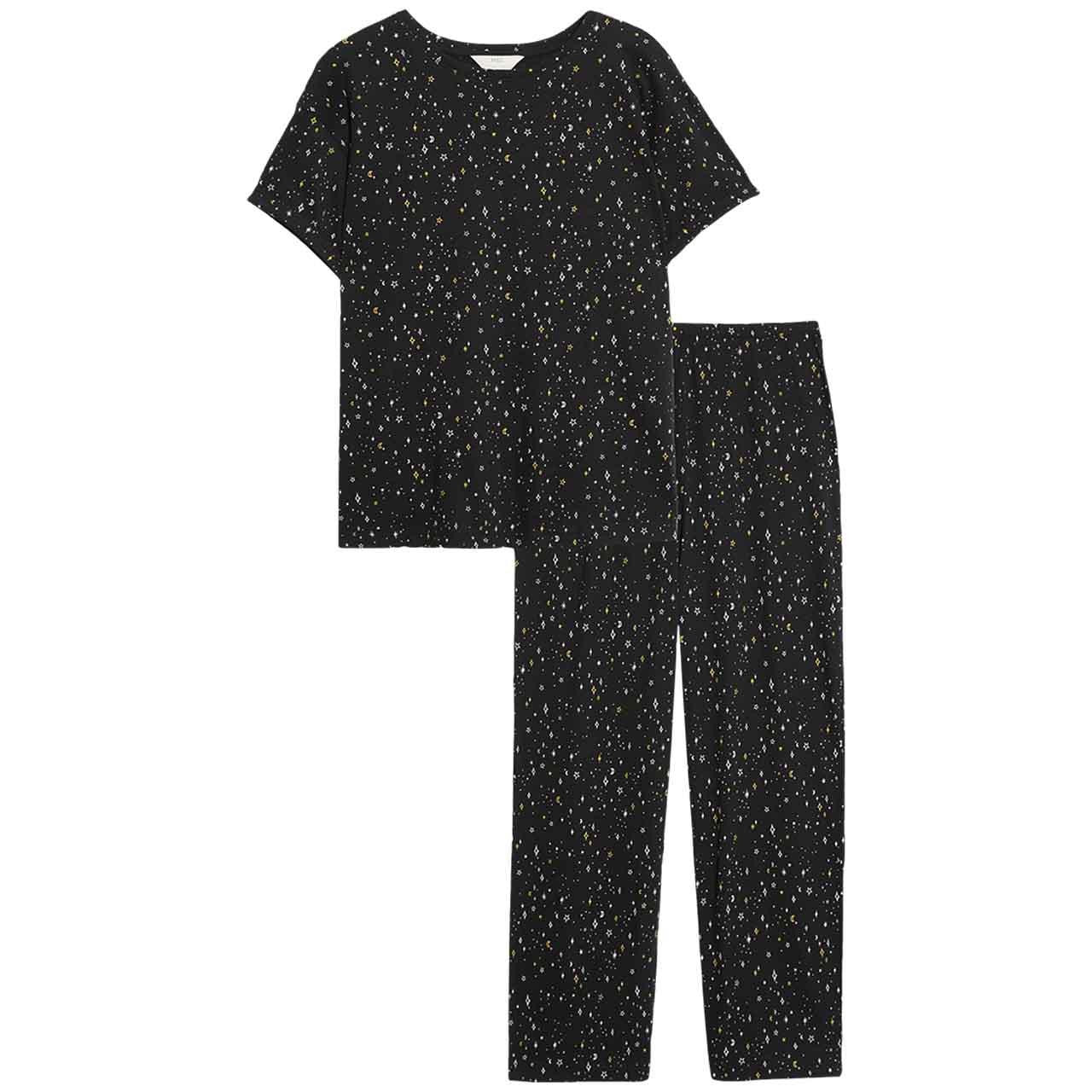 Read More| Crafted from breathable cotton-rich fabric, these printed pyjamas will keep you comfy at bedtime. Regular fit set, including a short-sleeved top and cropped bottoms with an elasticated waist for a flexible feel. M&S Collection: versatile styles in modern shapes with unique and playful details. . |