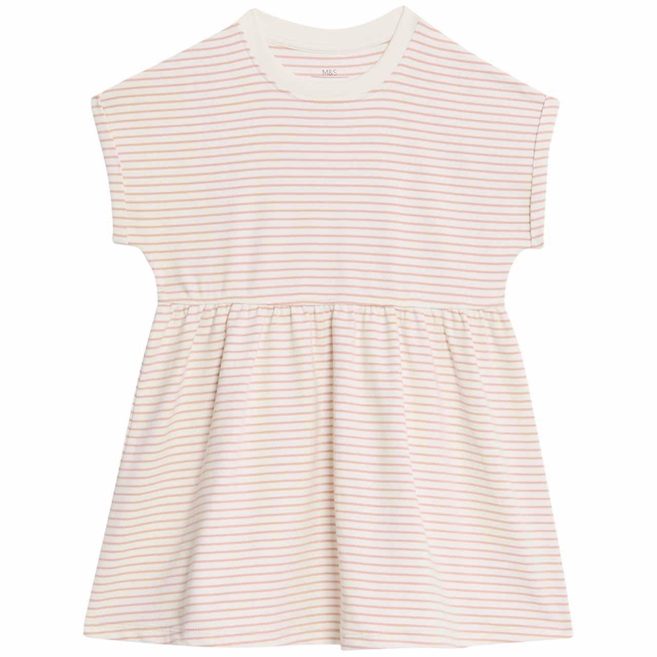 M&S Cotton Rich Striped Dress, 3-4 Years, Neutral