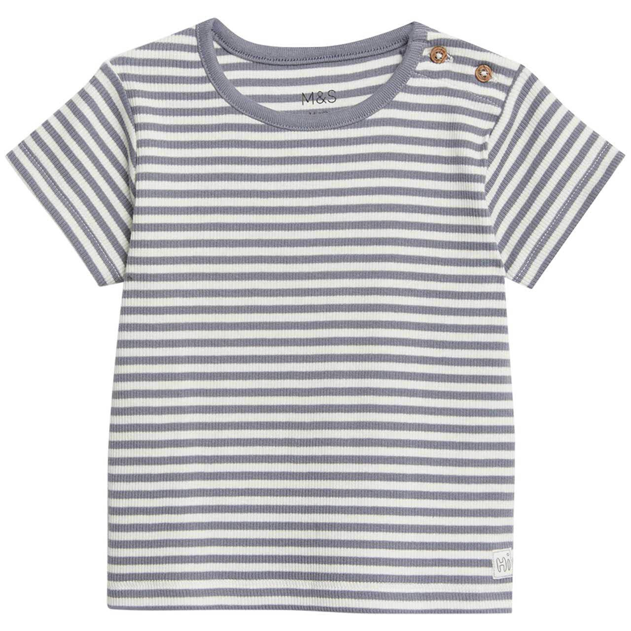 This M&S cotton-rich striped t-shirt brings extra cheer to your baby’s everyday outfits, ideal for regular wear. Short sleeves are perfectly suited for warmer days, ensuring breathability during play. The fabric blend incorporates added stretch to provide plenty of necessary wriggle room for growing and active infants.