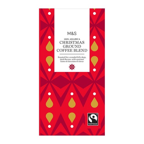 This M&S Christmas ground coffee blend combines carefully selected beans sourced from Latin America and Ethiopia. The resulting dark roast provides a wonderfully deep and rich flavour profile perfect for the festive period. Enjoy the carefully balanced tasting notes created by this 100% Arabica selection.