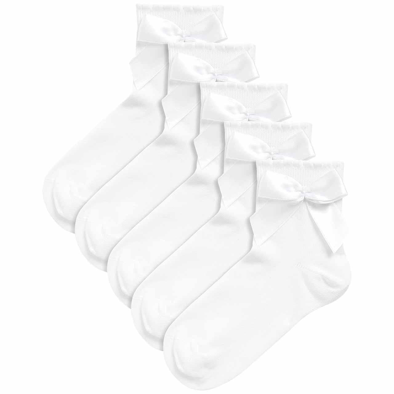 M&S Girls, Cotton Rich Ankle Bow Socks, Size 4-7 Large, White