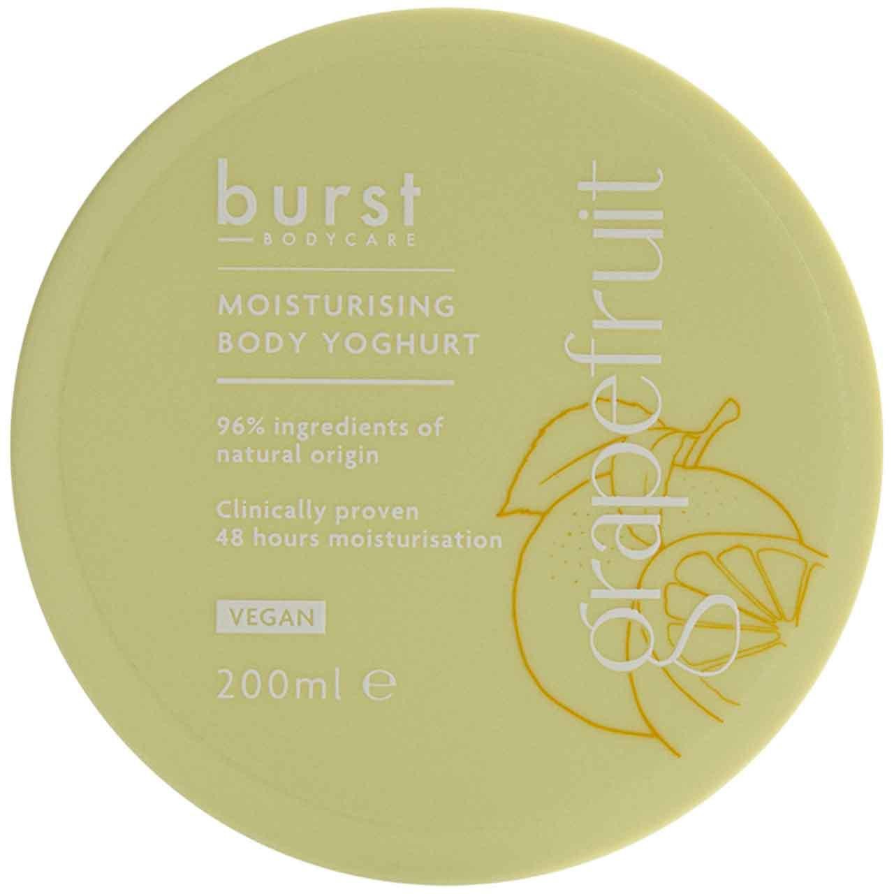 This Burst Bodycare body yoghurt offers a bright, energising aroma derived from zesty grapefruit. Its formula absorbs quickly, sinking in immediately to help moisturise and smooth your skin effectively. It is suitable for incorporating into your daily skincare routine for consistent results.