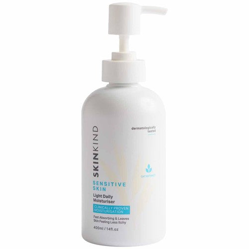 This SKINKIND Light Daily Moisturiser comes in a generous 400ml size, specifically engineered for the needs of sensitive skin types. It provides essential hydration without heaviness, supporting comfortable daily skincare routines. The formulation is designed to absorb quickly into the skin for convenient application.