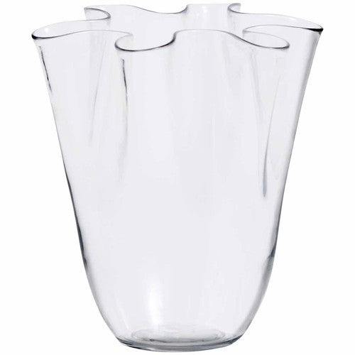 This M&S Medium Handkerchief Glass Vase offers a refined way to display your favourite fresh or faux flowers throughout your home. It is specifically designed to function as an eye-catching centrepiece for prominent placement on a mantelpiece or dining table. The substantial clear glass construction ensures versatile coordination with virtually any existing home décor scheme.