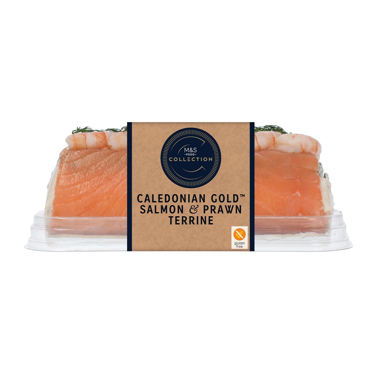 Discover the luxurious M&S Caledonian Gold Salmon & Prawn Terrine from the M&S Food Collection. This elegant dish expertly layers premium salmon and prawns, creating a sophisticated flavour profile suitable for any gathering. The preparation is also conveniently certified as gluten free.