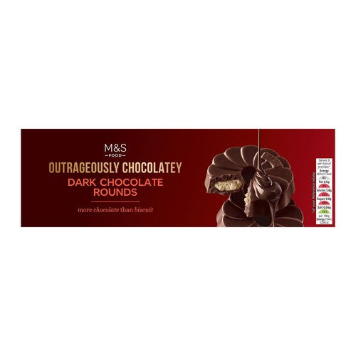 M&S Outrageously Chocolatey Dark Chocolate Rounds provide an exceptionally intense and rich flavour profile derived from their deep cocoa content. These decadent shortcake biscuit rounds are engineered to offer more chocolate than biscuit in every single serving. They are completely enveloped in a thick, smooth coating of dark chocolate for a luxurious experience.