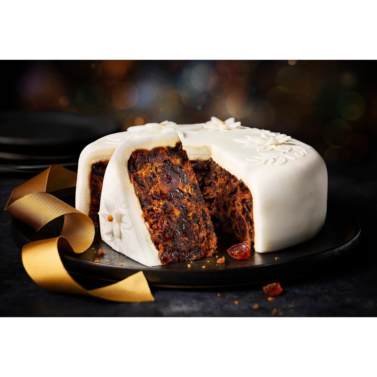 - Finished with a layer of rich marzipan and smooth, decorative icing.