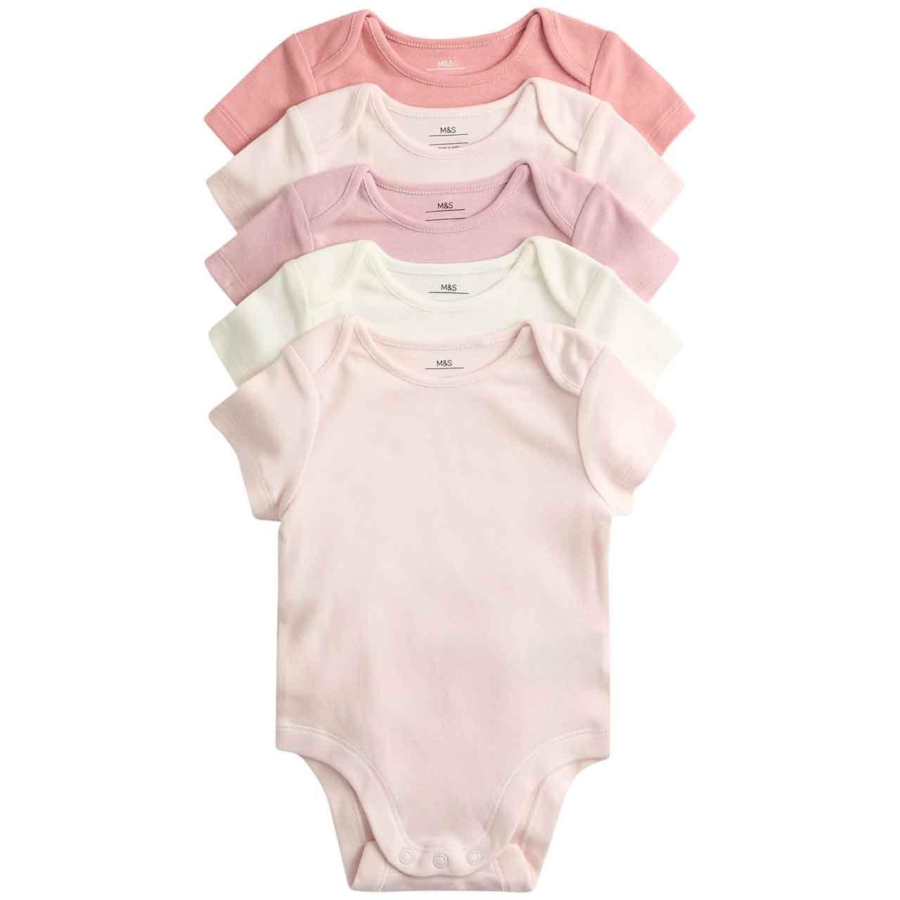 Refresh your baby's essentials with this useful pack of five pure cotton short-sleeved bodysuits from M&S. Designed for comfort and practicality, these garments provide a soft base layer for daily wear. The selection includes coordinating colours to easily mix and match throughout the week.
