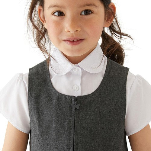 This stylish M&S school pinafore is designed for easy wear and lasting quality throughout the academic year. It features a functional front zip closure, complete with a decorative butterfly puller for simple dressing and removal. Crafted with sustainable materials, this garment prioritises durability alongside comfort for busy school days.