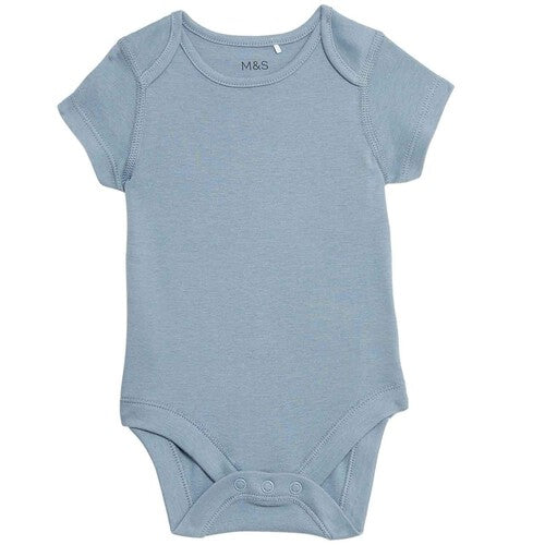 M&S Pure Cotton Bodysuits, 5 Pack, 9-12 Months, Blue Mix