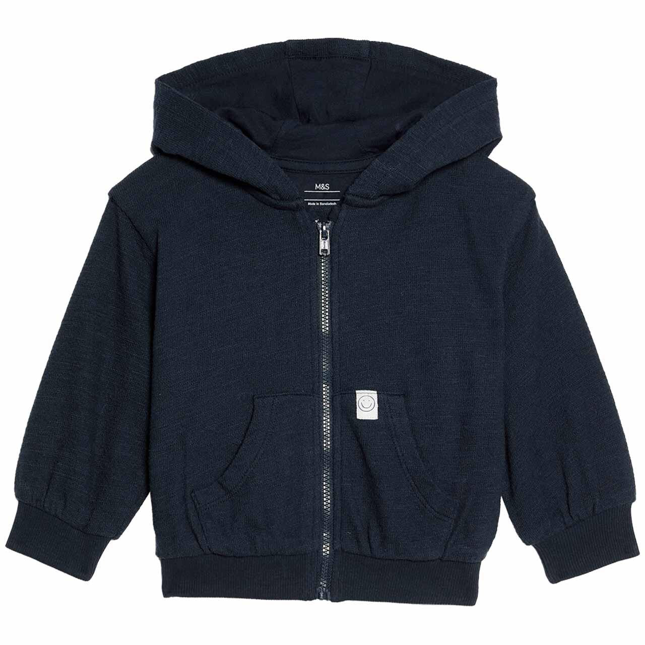 M&S Pure Cotton Zip Hoodie, 9-12 Months, Navy