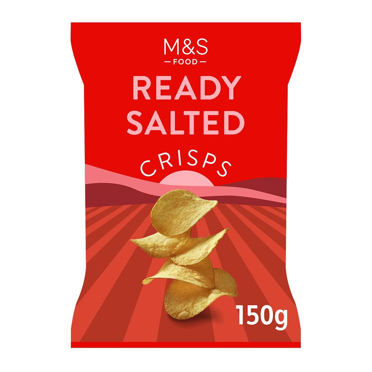 Enjoy the simple, classic flavour of M&S Food Ready Salted Crisps, available here in a generous 150g bag. These crisps are carefully prepared and seasoned, utilising 100% British potatoes for an authentic taste experience. They offer a satisfying, traditional crunch that suits any gathering.