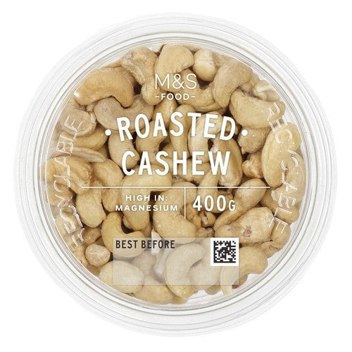 These M&S Food Roasted Cashew Nuts are presented in a convenient 400g resealable pack, ideal for enjoying at home or on the go. The quality cashews are carefully roasted to enhance their natural, buttery flavour profile. This product also maintains a commitment to packaging sustainability, as the outer container is clearly marked as recyclable for mindful disposal.