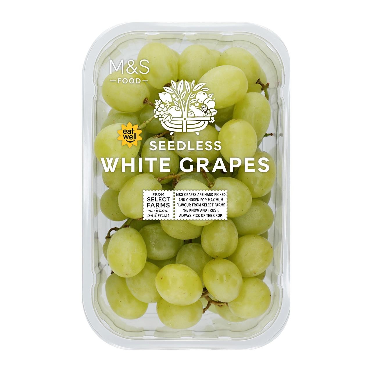 These M&S Seedless White Grapes offer a naturally sweet and juicy eating experience. They are carefully hand-picked from M&S Select Farms, ensuring they meet high standards for flavour upon arrival.