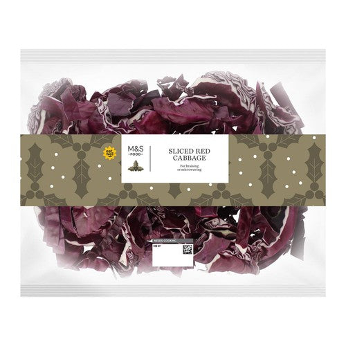 M&S Food offers this convenient package of Sliced Red Cabbage, ready for immediate use in your recipes. This vibrant vegetable is pre-cut to save valuable preparation time in the kitchen, allowing for quick additions to meals. It carries the M&S 'Eat Well' endorsement, suggesting alignment with healthier meal choices.