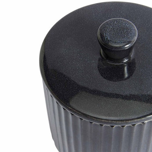 This M&S canister offers a contemporary look for your home organisation needs. Crafted from durable ceramic in a sleek charcoal finish, this small storage jar features distinctive vertical ribbing across its exterior surface, adding visual depth. It is designed to keep dry goods neatly contained while enhancing your countertop aesthetics effectively.