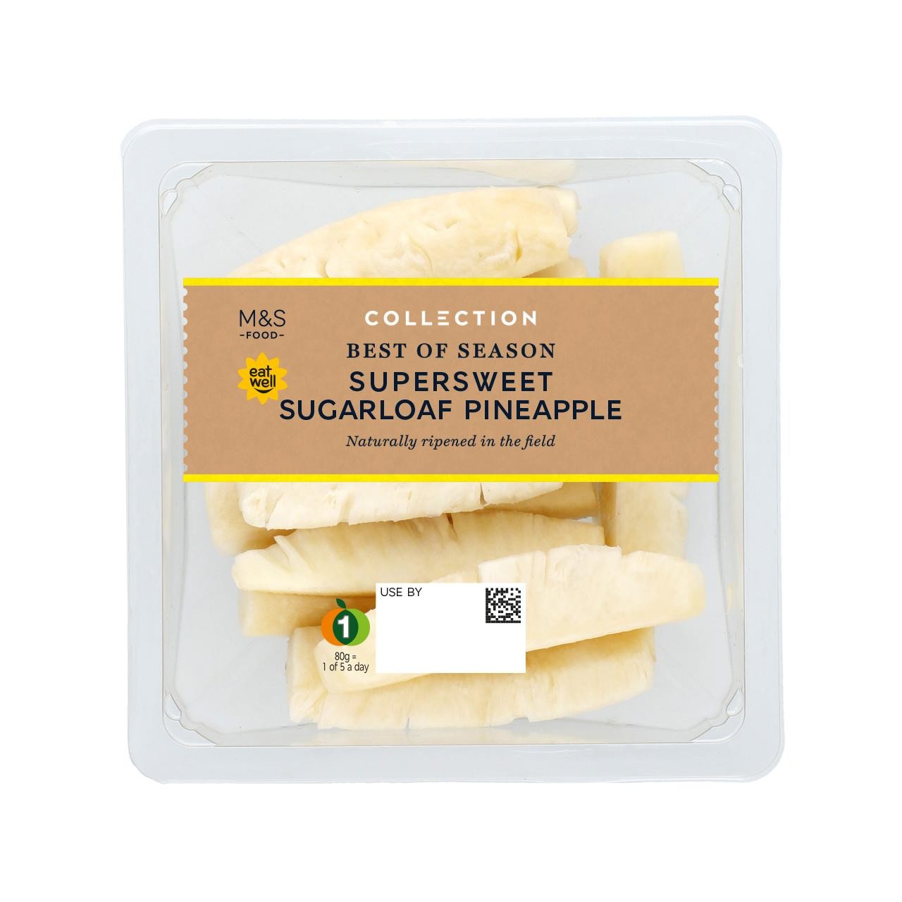 This Collection Best of Season Supersweet Sugarloaf pineapple is ripened naturally in the field to ensure high levels of freshness upon arrival. Expect a wonderfully juicy texture complemented by a sweet flavour profile balanced with subtle tangy citrus notes.