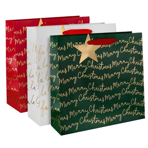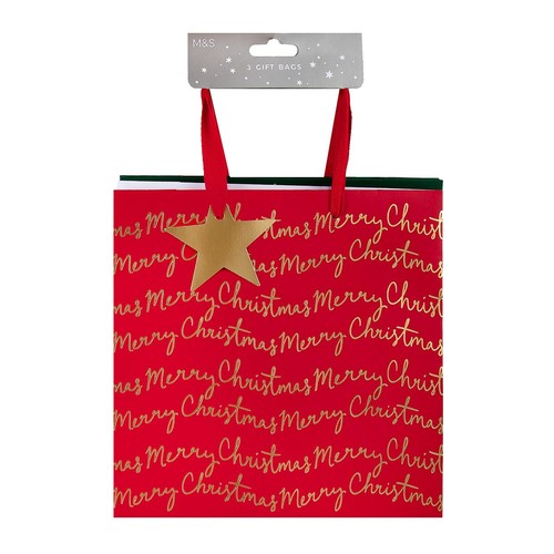This bundle provides three medium, square M&S Christmas gift bags for convenient festive wrapping. Each bag showcases a unique traditional design, enhanced with elegant gold foil text and detailing. These high-quality bags are perfectly sized for presenting your special seasonal treats.