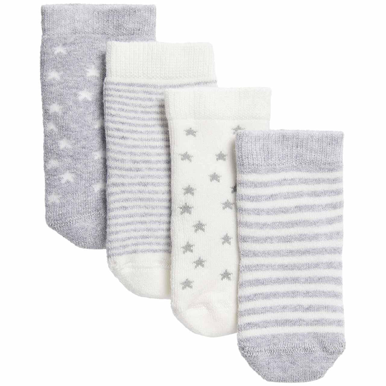 M&S Unisex Cotton Terry Baby Socks 4 Pack, 12-24 Months, Grey Mix