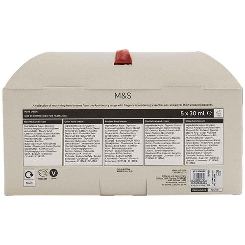 Explore the M&S Apothecary Mini Hand Cream Collection, featuring five distinct, travel-sized hand creams designed for different moments throughout your day. This curated set offers a range of sophisticated fragrances to soothe, invigorate, or comfort your hands. The collection is presented in attractive, gift-ready packaging with five specific treatments included.