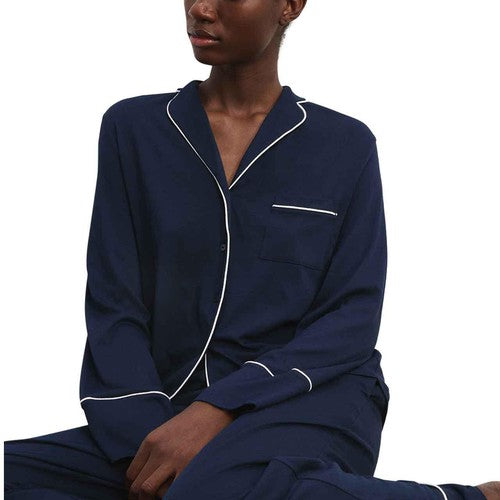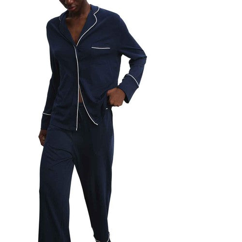 M&S Womens Autograph Cotton Modal Revere Pyjamas, M, Navy