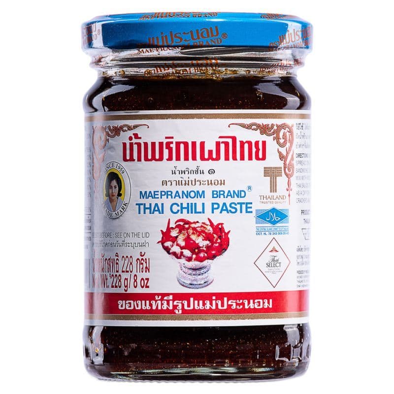 Maepranom, or Mae Pranom, is a Thai brand of pastes and sauces. Maepranom\u2019s Brand Thai Chili Paste is an authentic Thai paste with more than 60 years of history. The paste is made from dried chilli, garlic, onion, dried shrimp, tamarind, and soybean oil. The paste has a rich, spicy, and salty flavour with a powerful aroma. It can be used in Thai soups, curries, and stir-fries, or as a spread on toast and crackers.