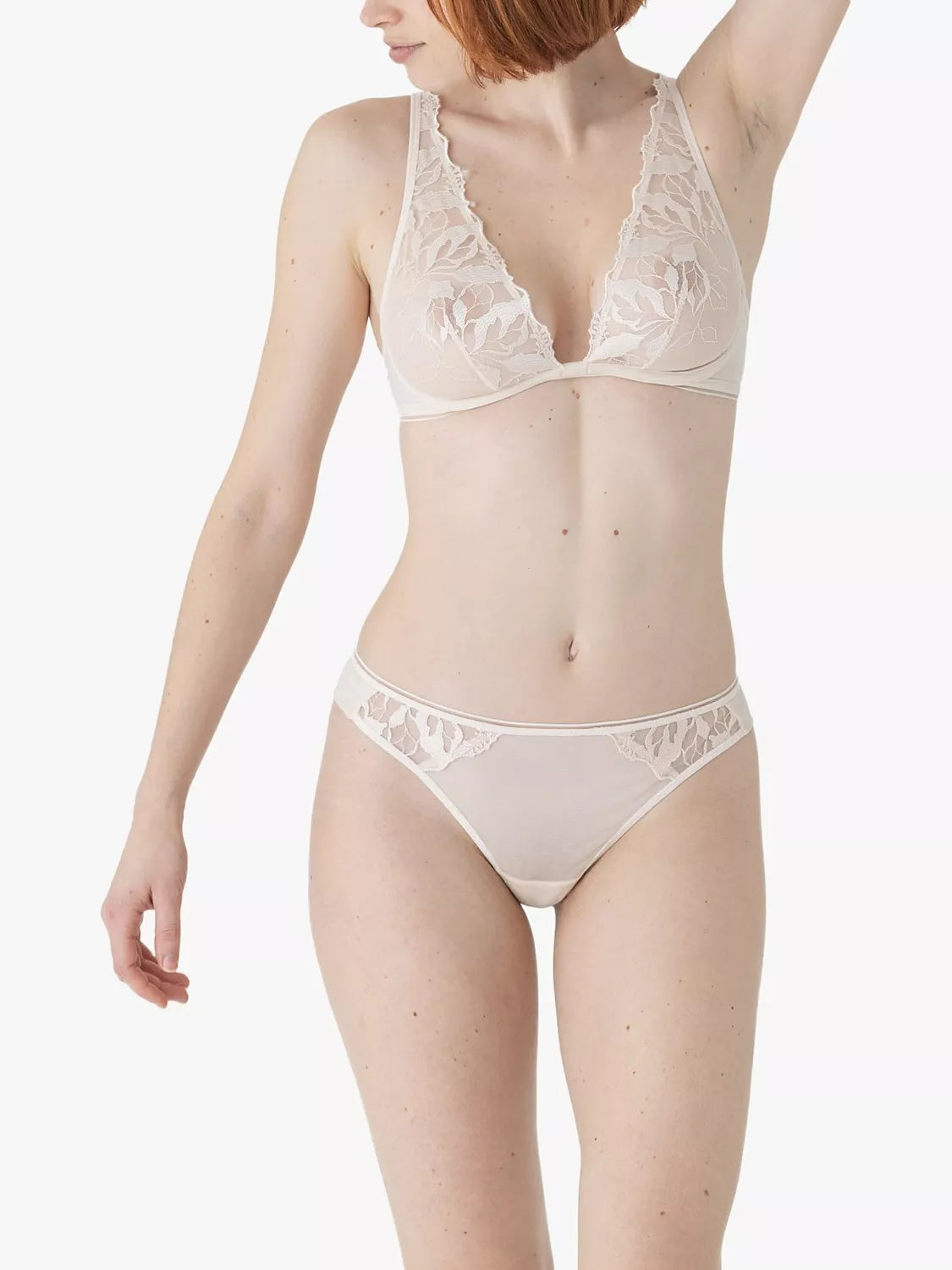 The Sin triangle bra is an interweaving of mesh and floral lace, all scooped up to look like patterns made directly on your skin. Continue the look and wear with the matching briefs.