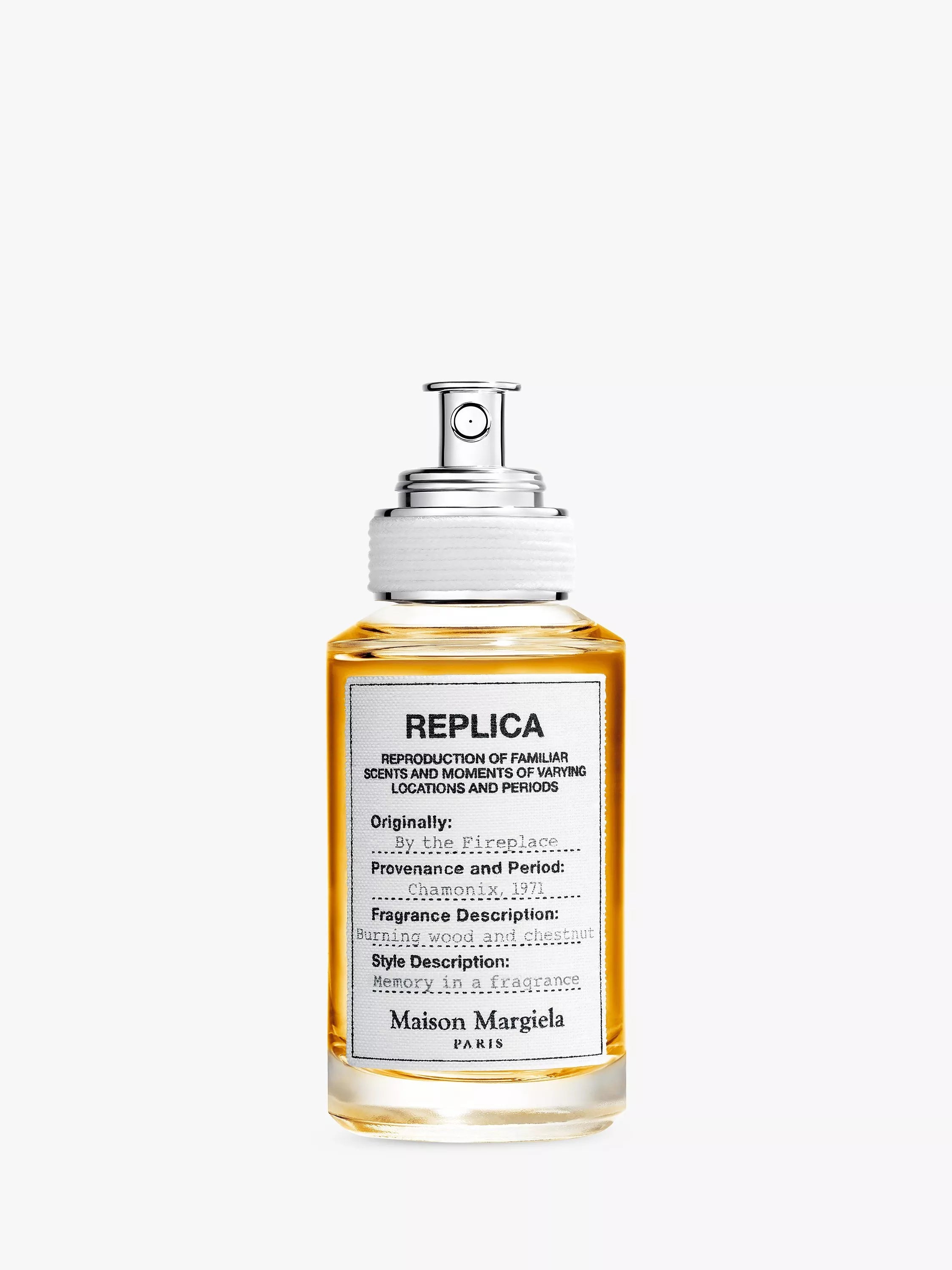 The memory of an evening by the Fireplace. After a day skiing in the French Alps, warm up by the cosy fireplace. Outside it is snowing on a frosty white landscape, the sound of the skis cutting through the icy snow. Inside the chalet, flames of a comforting fire crackle with a glowing warmth. The contrast of hot and cold with top notes of Pink Pepper and clove, contrasting with warm, comforting notes of Cashmeran and Orange Flower.