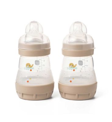 This twin pack of MAM Easy Start Anti-Colic bottles provides a familiar feeding experience for infants. The bottles are designed to help babies transition smoothly between breast and bottle feeding sessions. Each 160ml bottle features innovative components for comfortable use.