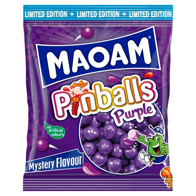Experience the limited edition mystery flavour of Maoam Purple Pinballs in this 140g pack. These popular treats deliver a distinctive combination of fruit and cola notes within their satisfyingly chewy sweets texture.