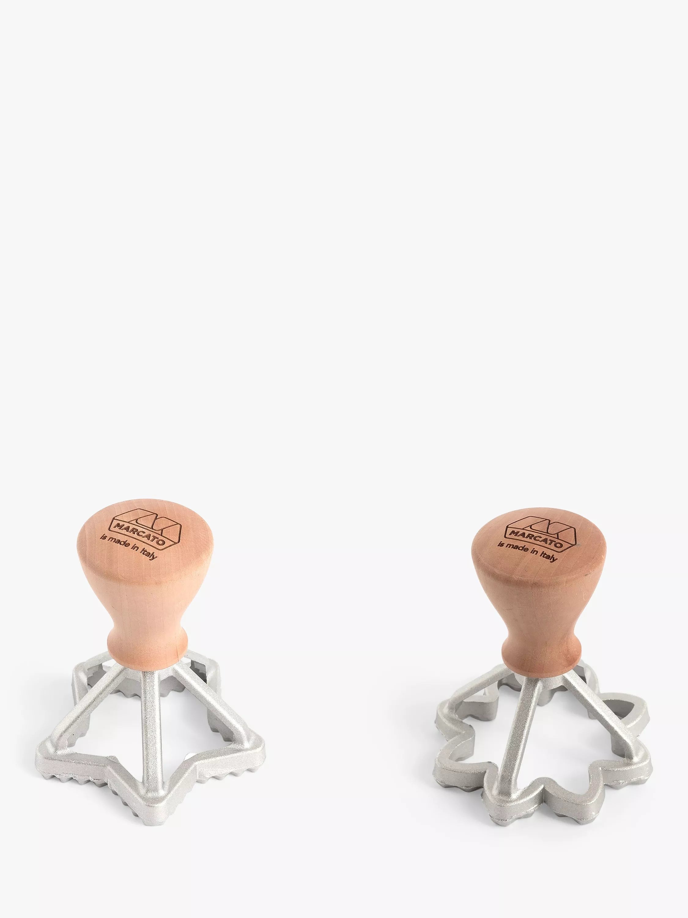 Biscottini kit includes two Marcato classic ravioli stamps: star 65mm and flower 70mm. The wood chosen for these stamps is hard and compact for durability. Creates two common shapes and can be used to make cookies, ravioli, mini pizzas and appetisers.