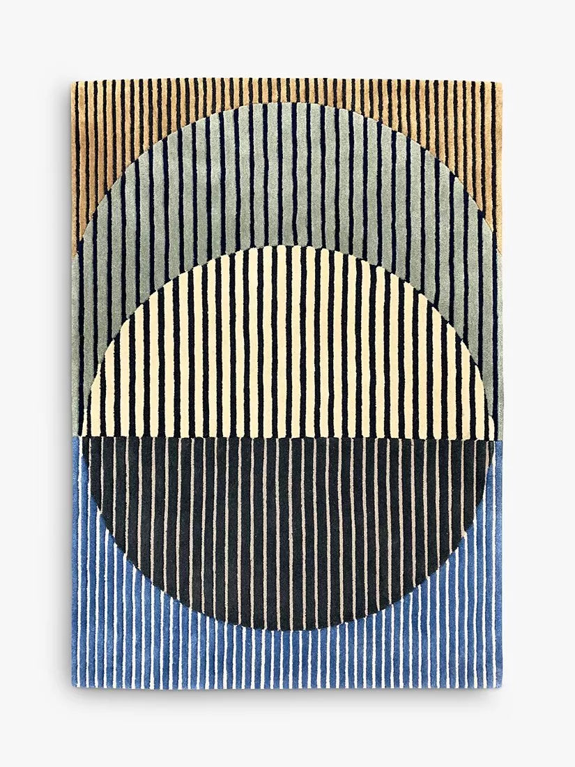 The Logan rug design is made up of a classic Margo Selby motif, oversized and filled with varying scales of linear pattern. The pattern-within-pattern effect brings smart architectural texture to the floor. The limited palette references the inky tones of traditional indigo textiles.
