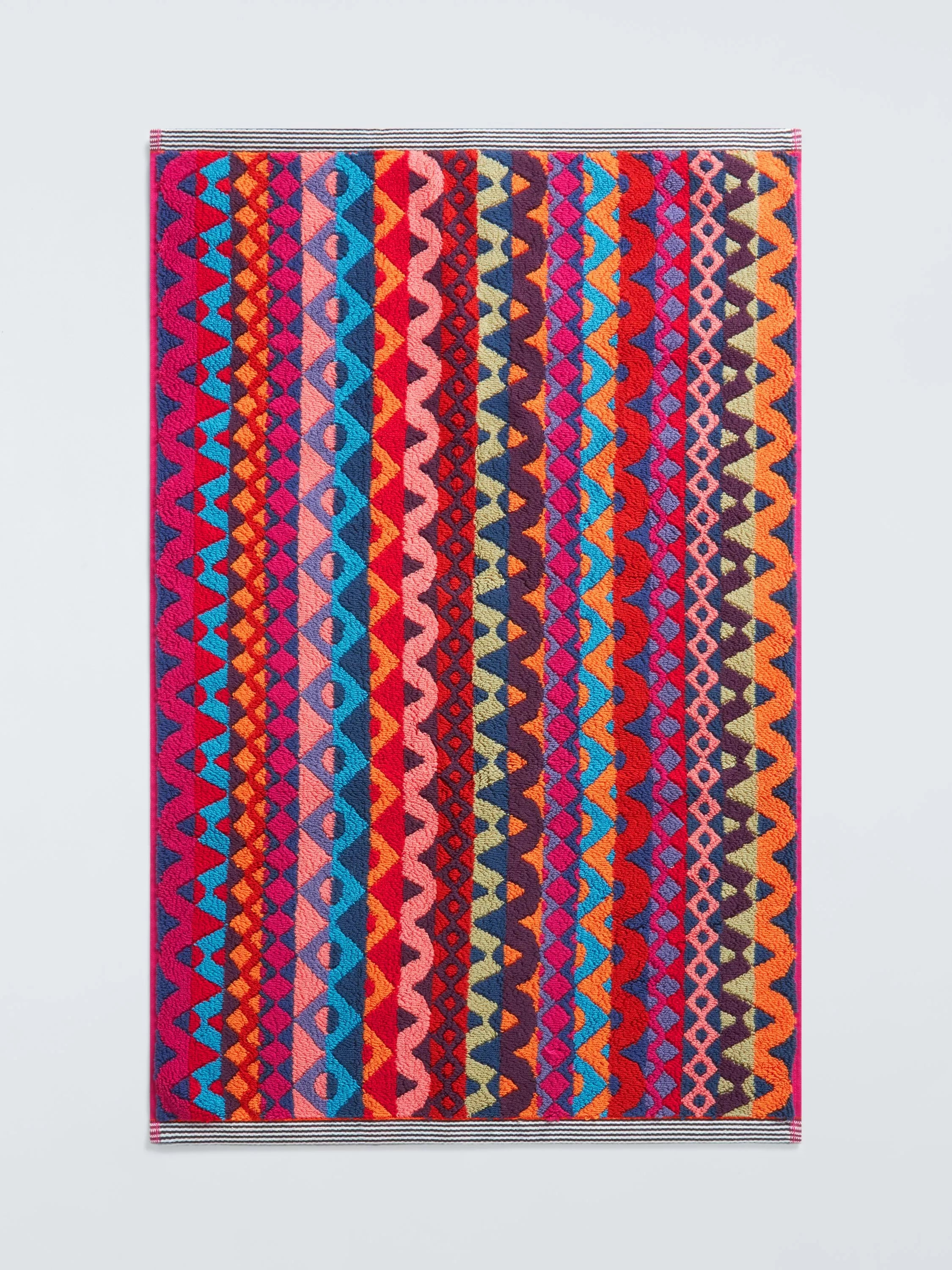 The Morecambe design is a vibrant geometric in shades of red, orange and blue.