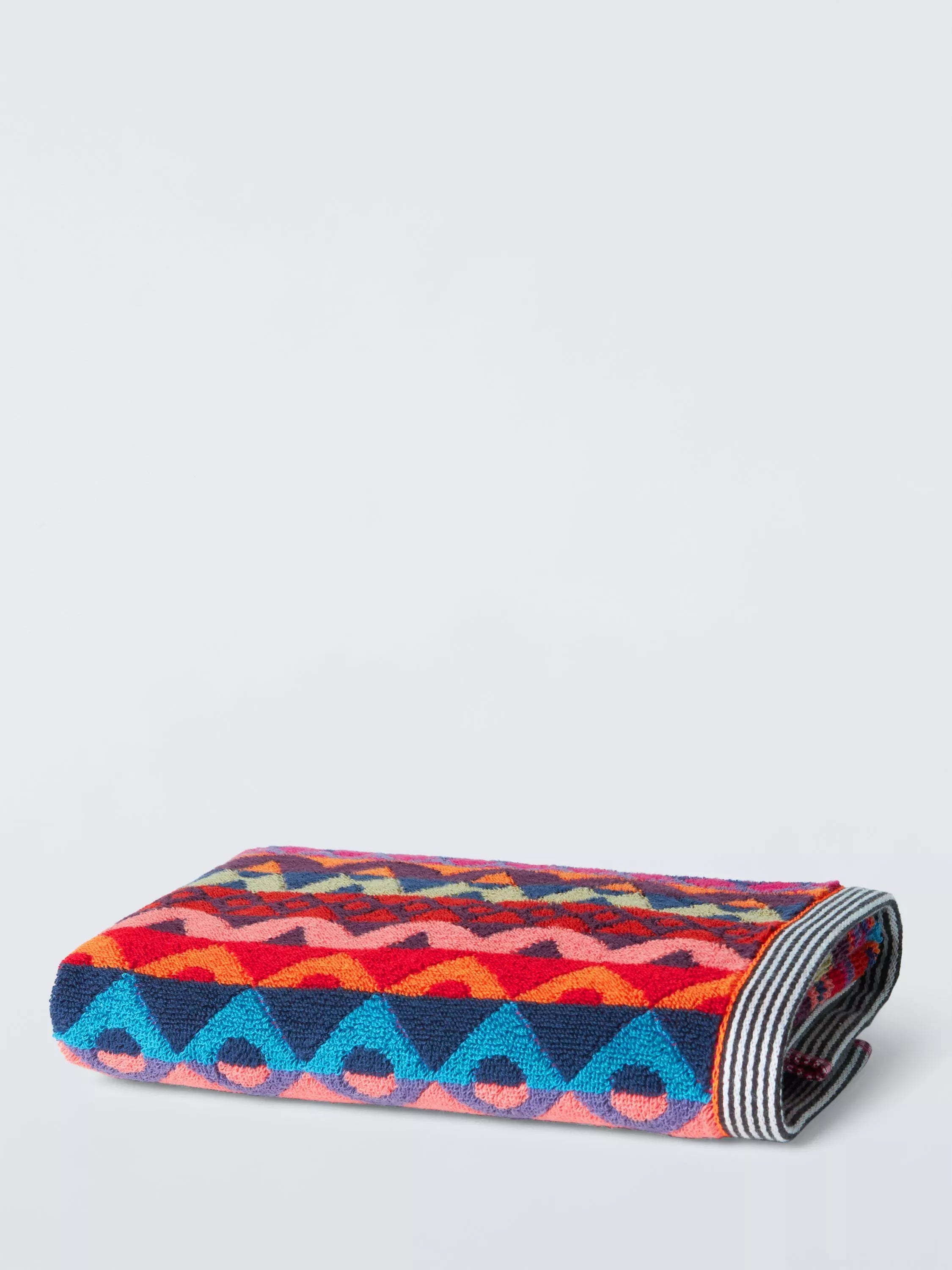 The Morecambe design is a vibrant geometric in shades of red, orange and blue.