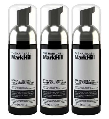 This multipack contains three bottles of Mark Hill Hair Lab Strengthening Foam Conditioner. This specific formulation is developed for individuals managing fine, thinning, or delicate hair structures. It utilises a blend of high-performance botanicals aimed at improving hair density and volume results.