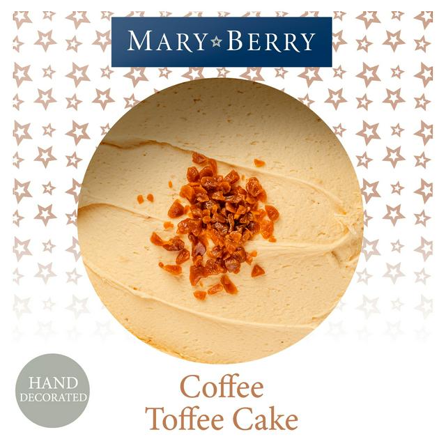 Indulge in the rich flavours of the Mary Berry Coffee Toffee Cake, which starts with a moist coffee sponge. This delicious creation is filled and topped with smooth, coffee-flavoured frosting and complemented by crunchy toffee pieces. It comes hand decorated, offering a refined look suitable for any gathering. This vegetarian-friendly coffee cake is made without artificial colours or flavours and is H.V.O. free.