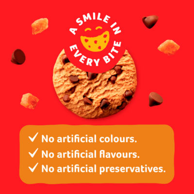 IngredientsWheat Flour (Wheat Flour, Calcium Carbonate, Niacin, Iron, Thiamin) , Sugar , Sustainable Palm Oil , Chocolate Chips (15%) (Sugar, Cocoa Mass, Vegetable Fats (Sustainable Palm, Sal, Shea), Emulsifiers (Soya Lecithin, E442, E476), Cocoa Butter, Flavourings) , Caramel Pieces (3%) (Fructose Glucose Syrup, Glucose Syrup, Apple Puree, Sugar, Humectant (Glycerol), Wheat Fibre, Palm Fat, Whey (Milk), Butter (Milk), Gelling Agent (Pectin), Skimmed Milk Powder, Flavourings, Acidity Regulator (Lactic Acid), Emulsifier (Sunflower Lecithin)) , Partially Inverted Sugar Syrup , Rice Flour , Whey or Whey Derivatives (Milk) , Raising Agents (Sodium Bicarbonate, Ammonium Bicarbonate) , Salt , Flavourings , Malted Barley Flour .